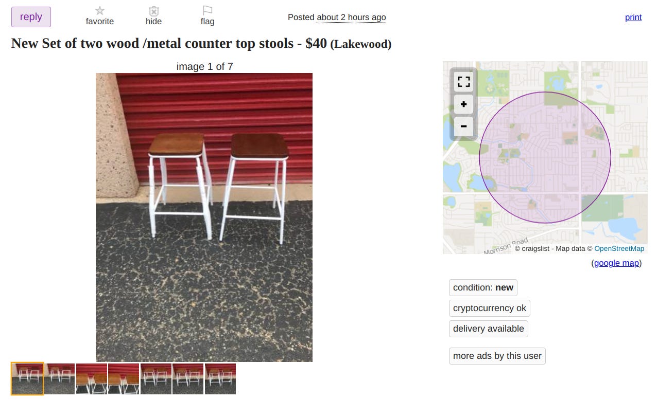 At present I’m not aware of any crypto-native marketplaces for selling used goods, so if you are please let me me know either here, on Twitter or by email.